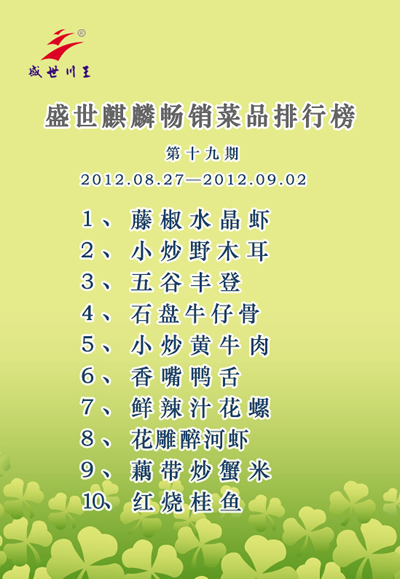 盛世麒麟畅销菜品排行榜第十九期