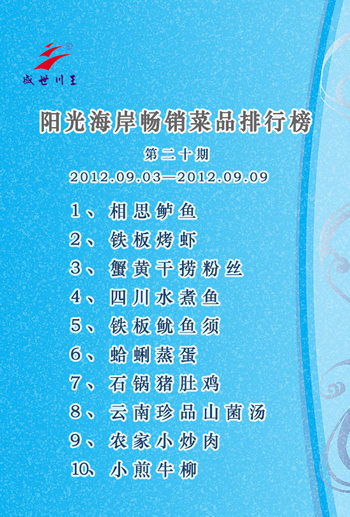 阳光家园大酒店畅销菜品排行榜第二十一期