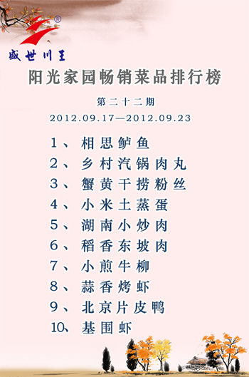 阳光家园大酒店畅销菜品排行榜第二十二期
