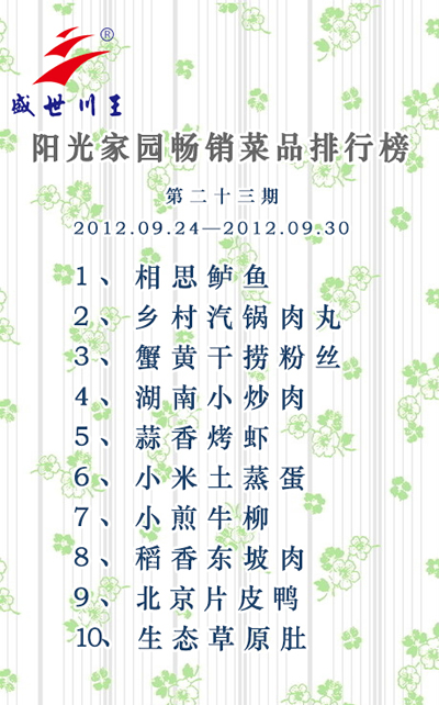 阳光家园大酒店畅销菜品排行榜第二十三期