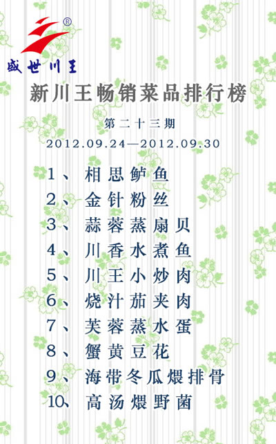 新川王畅销菜品排行榜第二十三期