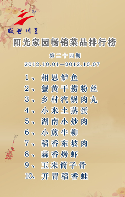 阳光家园大酒店畅销菜品排行榜第二十四期