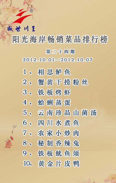 盛世麒麟畅销菜品排行榜第二十四期