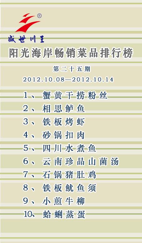 盛世麒麟畅销菜品排行榜第二十五期