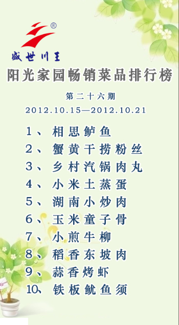阳光家园大酒店畅销菜品排行榜第二十六期
