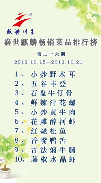 阳光家园大酒店畅销菜品排行榜第二十六期