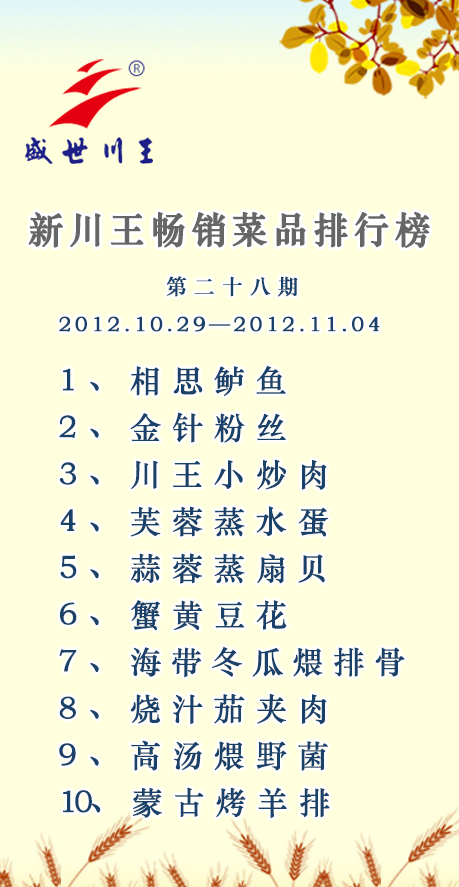 新川王畅销菜品排行榜第二十八期