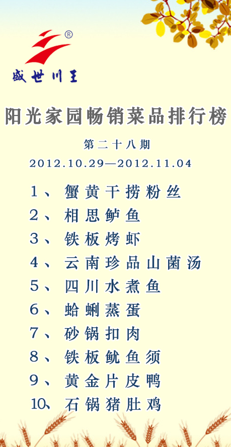 阳光家园大酒店畅销菜品排行榜第二十八期