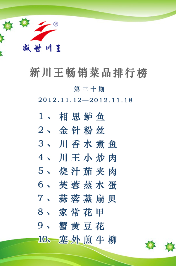 新川王畅销菜品排行榜第三十期