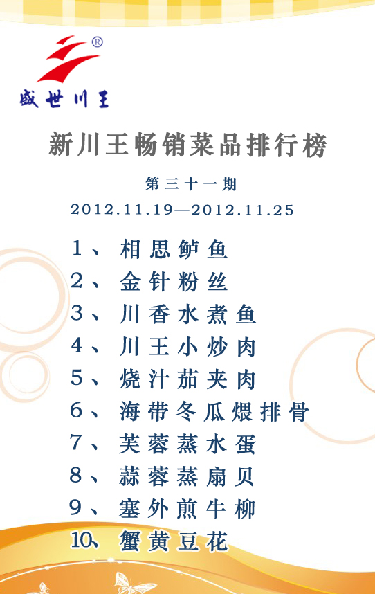 发布时间:2012-11-28 来源:九江市盛世川王餐饮管理有限公司 浏览次数:1781