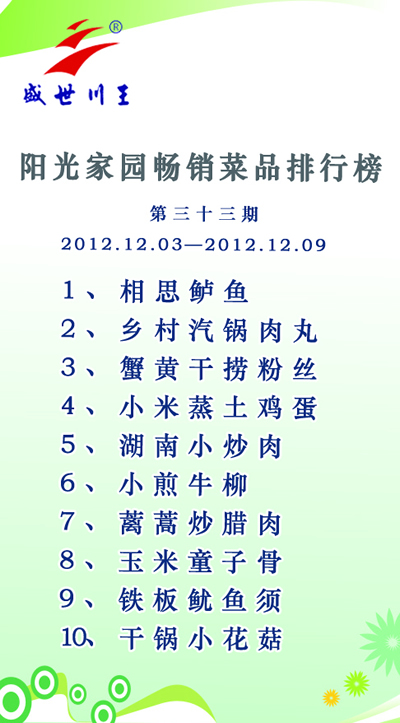 阳光家园畅销菜品排行榜第三十三期