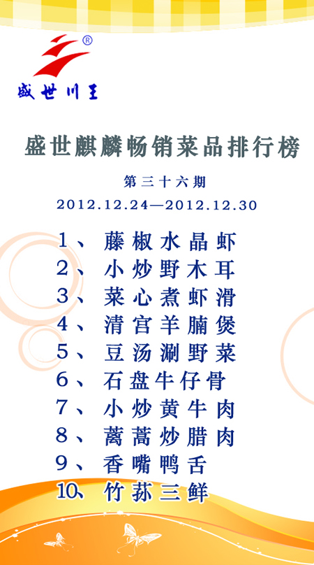 阳光家园大酒店畅销菜品排行榜第三十六期