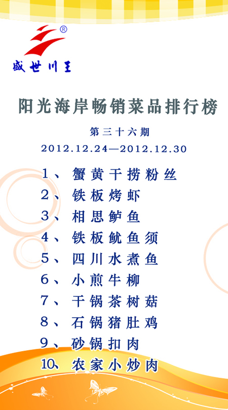 盛世麒麟畅销菜品排行榜第三十六期