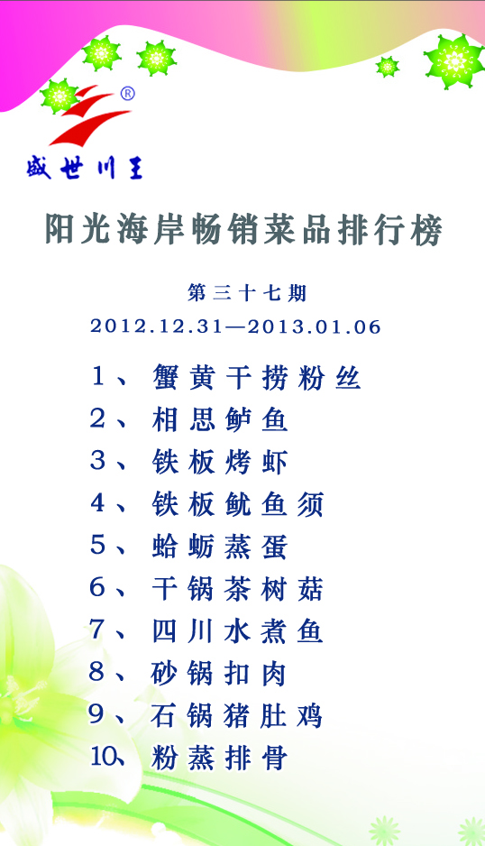 发布时间:2013-01-08 来源:九江市盛世川王餐饮管理有限公司 浏览次数:1683