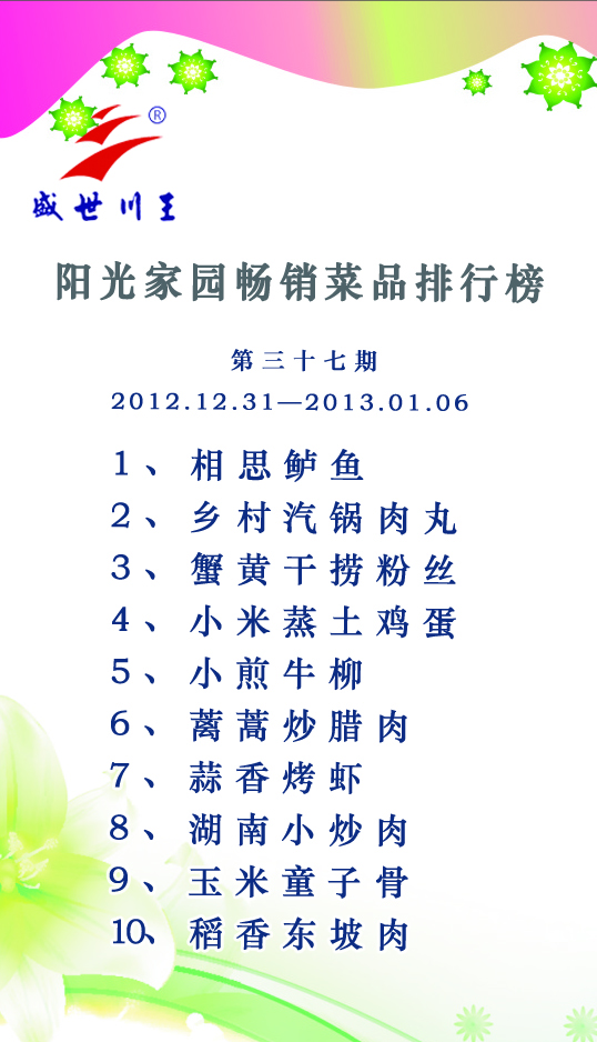 发布时间:2013-01-08 来源:九江市盛世川王餐饮管理有限公司 浏览次数:1698