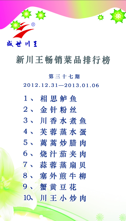 发布时间:2013-01-08 来源:九江市盛世川王餐饮管理有限公司 浏览次数:1676