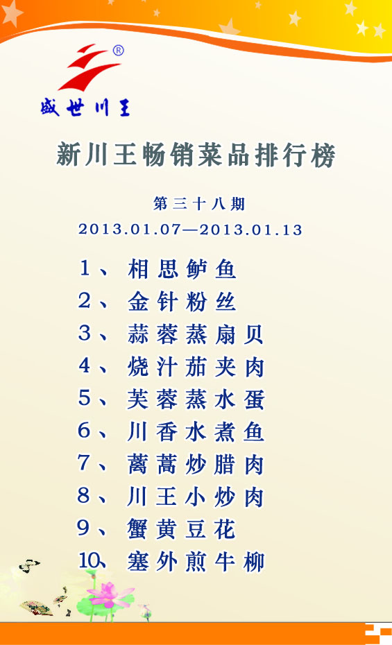 发布时间:2013-01-17 来源:九江市盛世川王餐饮管理有限公司 浏览次数:1637
