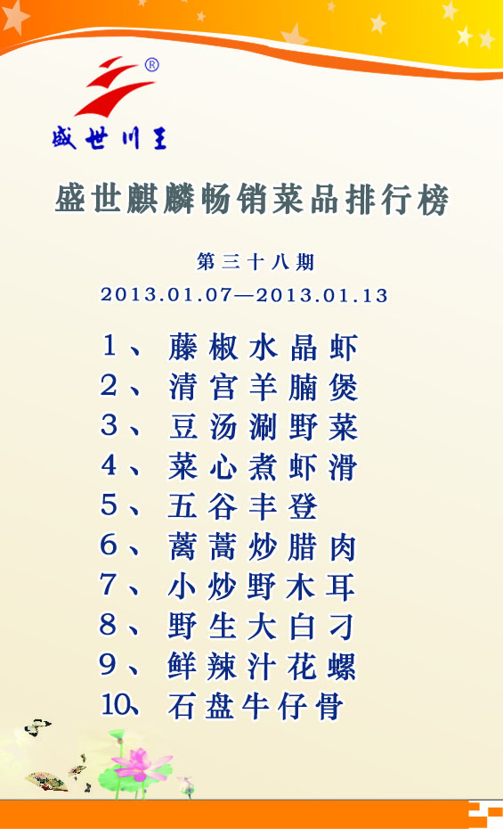 发布时间:2013-01-17 来源:九江市盛世川王餐饮管理有限公司 浏览次数:1651