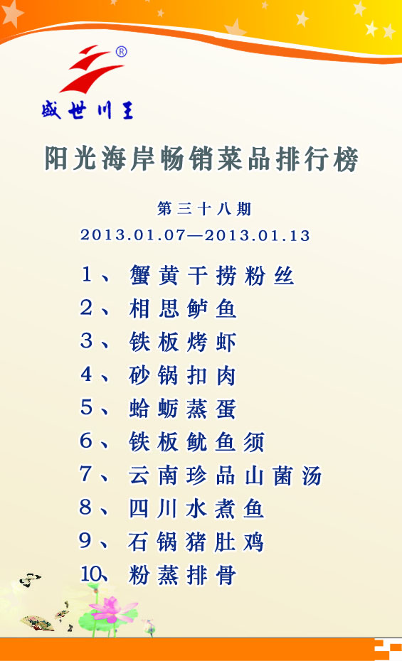 阳光家园大酒店畅销菜品排行榜第三十九期