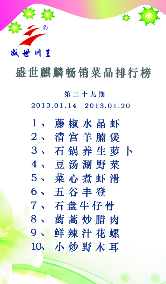 发布时间:2013-01-22 来源:九江市盛世川王餐饮管理有限公司 浏览次数:1692