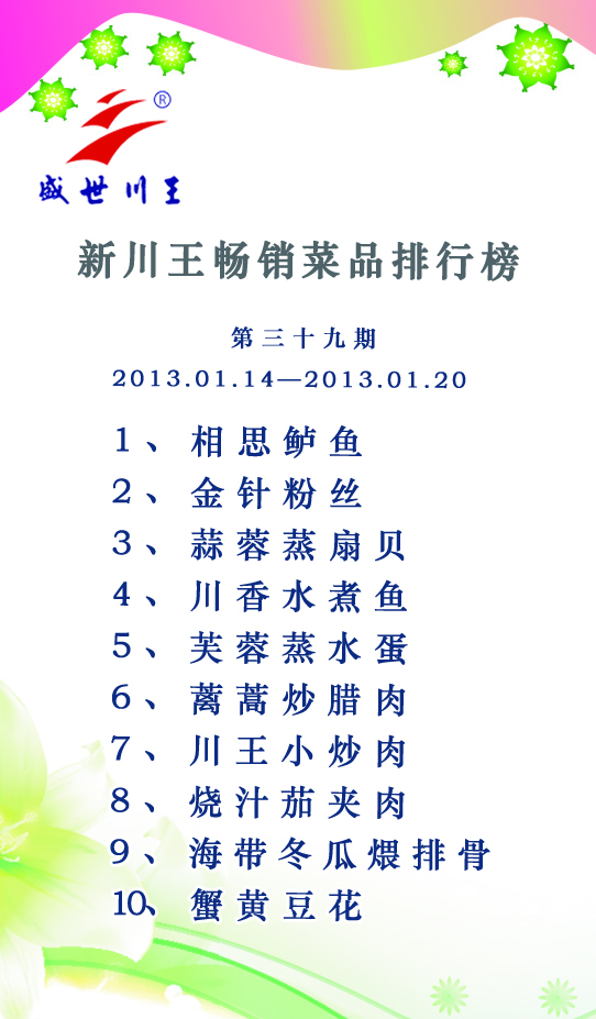 发布时间:2013-01-22 来源:九江市盛世川王餐饮管理有限公司 浏览次数:1720