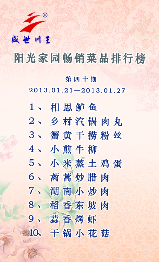 阳光家园畅销菜品排行榜第四十期