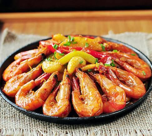 食 材:虾、辣酱、豆豉酱、香芹、葱、姜、蒜、红彩椒、绿彩椒。