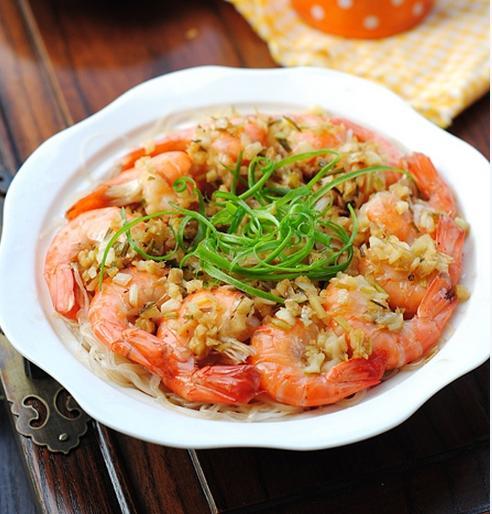 食 材:去头大虾、粉丝(事先开水泡发)、葱姜蒜(切末)、生抽1.5勺、陈醋1勺、香油半勺、水1勺、红糖半勺、盐适量调成酱汁。