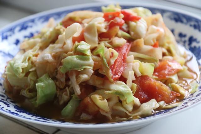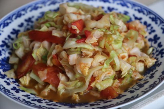 原料:圆白菜、西红柿、大蒜