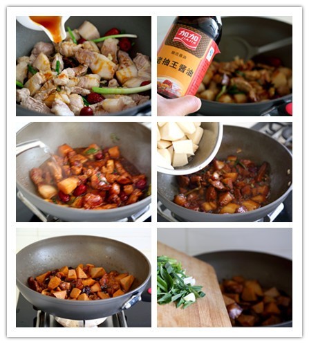 无论是什么红烧肉,烧法是一样的:肉先泡出血水,再炒干,然后下香料,加水,将肉煮熟透。最后加盐调味,加配菜,出锅时可以撒些蒜苗或香菜增色又增香。