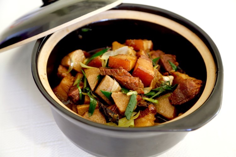 10.肉炖烂,加盐调味,并将芋头倒下去。