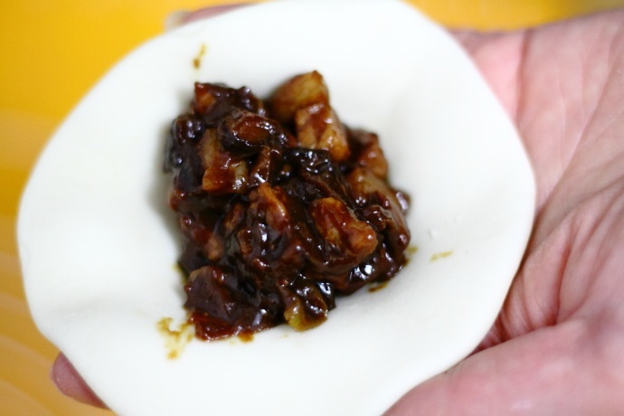 12、取适量的馅料放入中间
