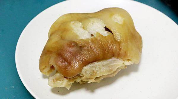 2.取出焯好的猪肘子,用清水冲洗,并且检查是否还有小猪毛,拔掉,办法自己想哈。