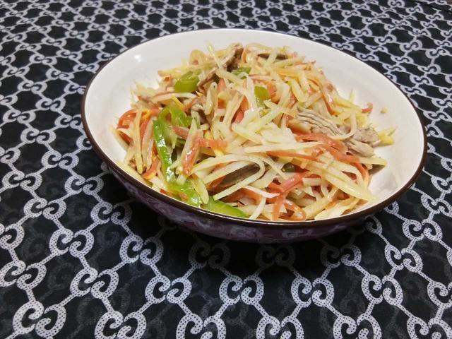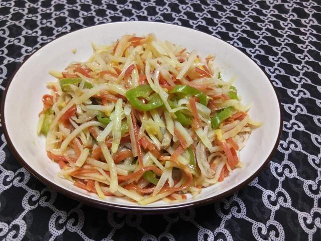 土豆红萝卜丝是一道简单的不能再简单的家常菜了,相信很多人跟我一样,人生中下厨的第一道菜就是土豆丝啦,