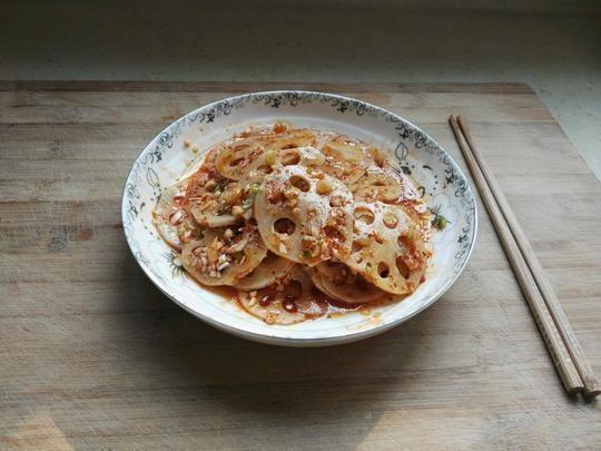 2、莲藕切片后,如不马上用,将其浸入加有少许白醋的清水中,可以防止变色(这道菜因为加了陈醋酱油把莲藕本身的颜色掩盖了,所以就无所谓啦);
