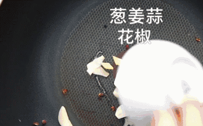 4、锅内放油,放葱、姜、蒜、花椒、豆瓣酱炒匀。