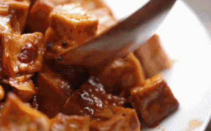 煎过的豆腐外表焦脆,裹上酱汁后,鲜香的味道依附在舌尖,好吃得不可思议!最喜欢用里面的汤汁拌饭了,能把饭吃到精光!你还不准备列入常备菜单?